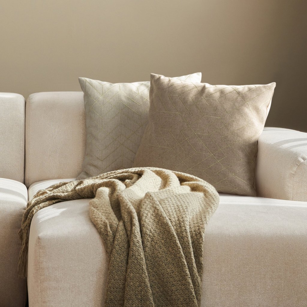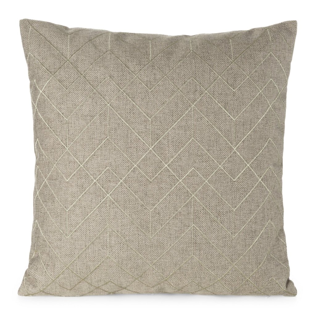 Přidejte do svého interiéru stylový akcent s dekorativním povlakem na polštář z látky připomínající len s viditelnou vazbou a matným povrchem. Jeho nadčasový charakter umocňuje geometrická výšivka, která povlaku dodává elegantní a moderní vzhled. Šířka: 45 cm, délka: 45 cm, barva: béžová, hmotnost: 310 GSM, složení: 100 % polyester.Doplňkové parametry