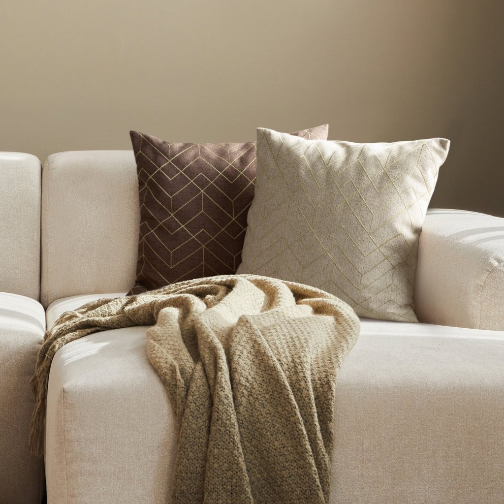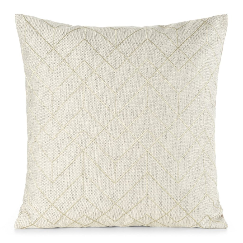 Přidejte do svého interiéru stylový akcent s dekorativním povlakem na polštář z látky připomínající len s viditelnou vazbou a matným povrchem. Jeho nadčasový charakter umocňuje geometrická výšivka, která povlaku dodává elegantní a moderní vzhled. Šířka: 45 cm, délka: 45 cm, barva: krémová, hmotnost: 310 GSM, složení: 100 % polyester.Doplňkové parametry