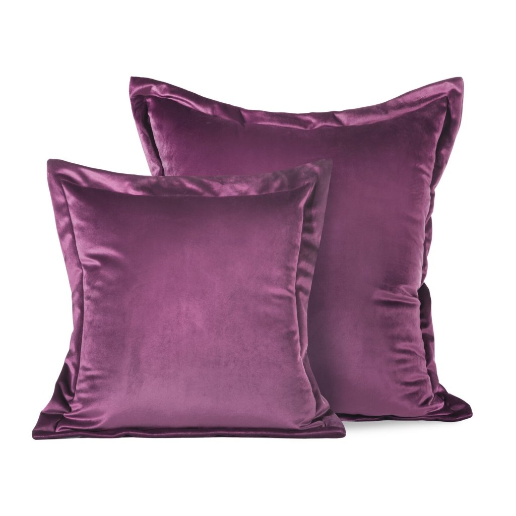 Sametový povlak na polštář s ozdobnými okraji, zapínání na zip, šířka: 45 cm, délka: 45 cm, barva: tmavě fialová, hmotnost: 290 GSM, složení: 100% polyester.Doplňkové parametry