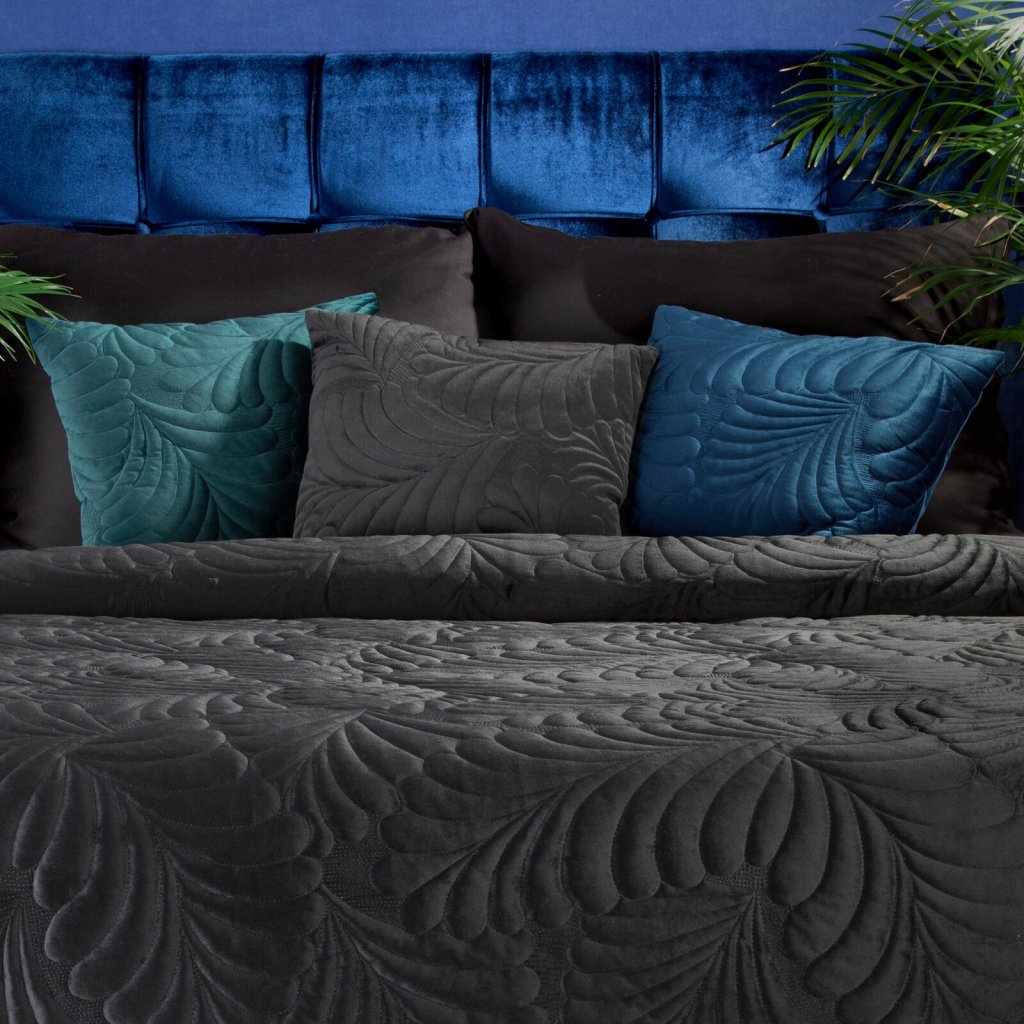 Sametový dekorační povlak na polštář, vyšívaný nití. Šířka: 45 cm, délka: 45 cm, barva: stříbrná, hmotnost: 290 GSM, složení: 100 % polyester.Doplňkové parametry