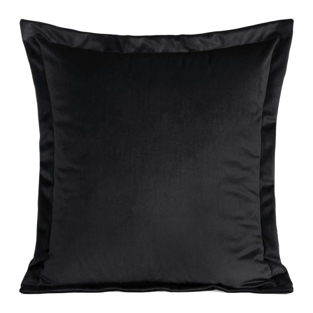 Sametový dekorativní povlak na polštář s lemem na okrajích a zapínáním na zip. Šířka: 45 cm, délka: 45 cm, barva: černá, hmotnost: 290 GSM, složení: 100% polyester.Doplňkové parametry