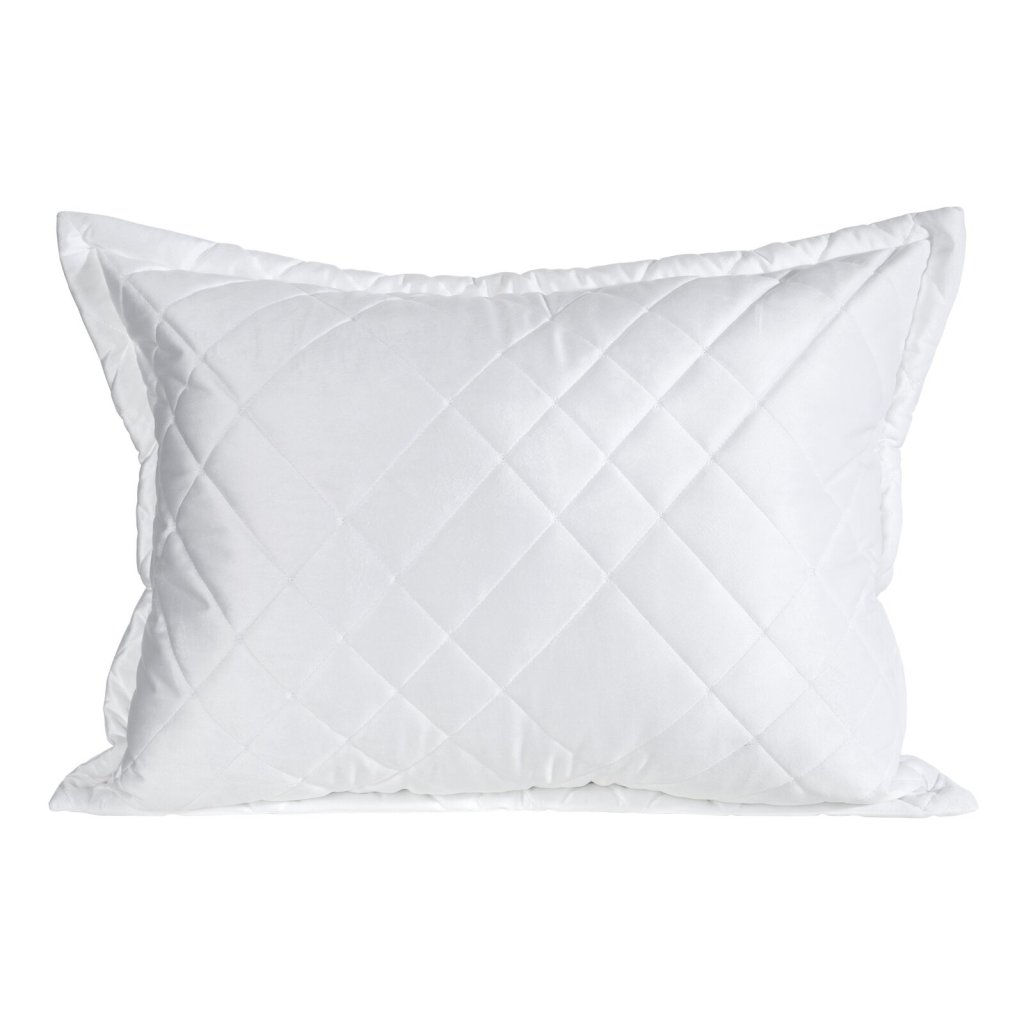 Dodejte svému interiéru eleganci a sofistikovanost pomocí povlaku na dekorační polštář RIA z měkké, na dotek příjemné sametové tkaniny. Stylové prošívání vytváří geometrický vzor, zatímco ozdobný volán na okrajích dodává klasický nádech. Šířka: 50 cm, délka: 70 cm, barva: bílá, složení: 100% polyester.Doplňkové parametry