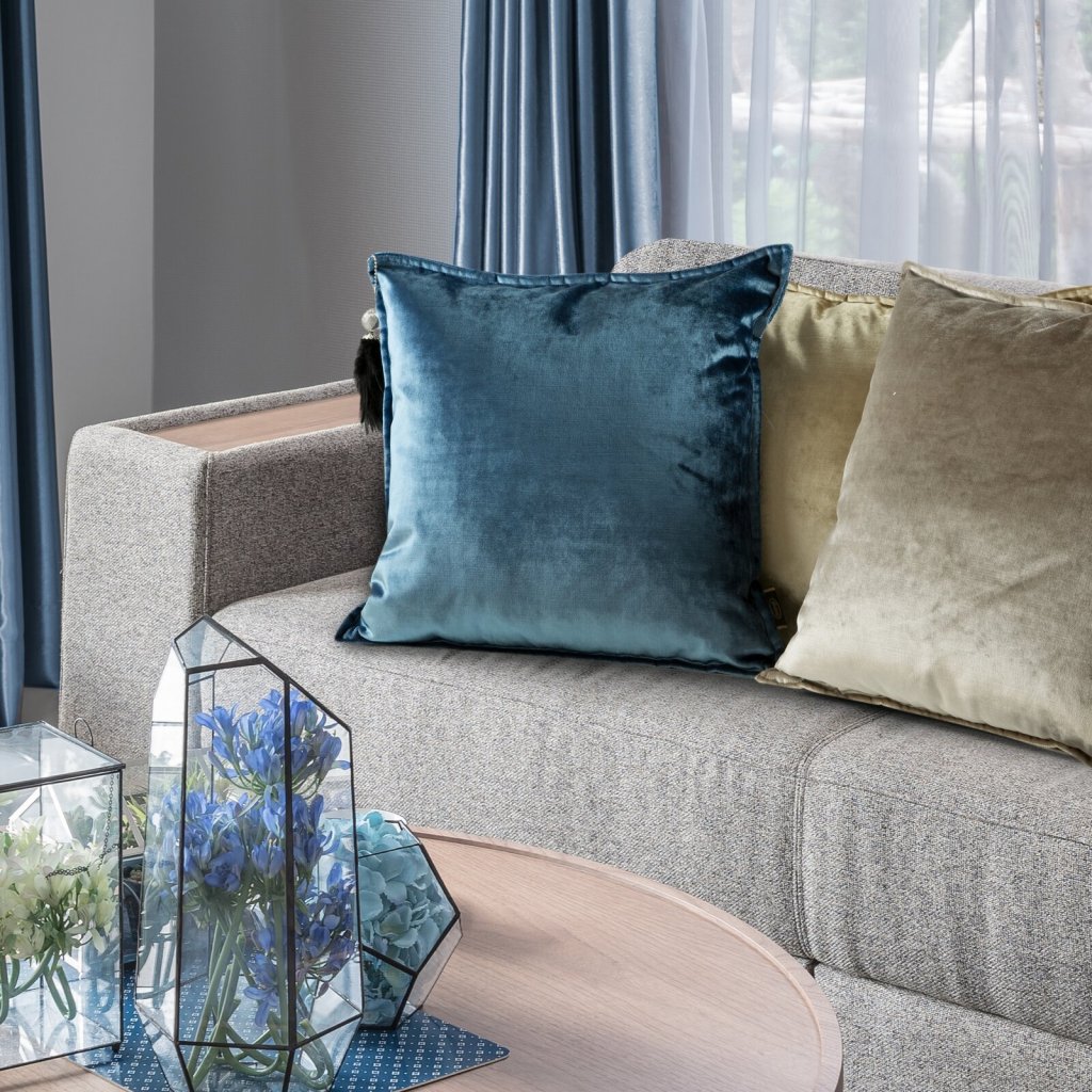 Jednobarevný sametový dekorační povlak na polštář s ozdobným přívěskem. Šířka: 45 cm, délka: 45 cm, barva: tmavě zelená, hmotnost: 340 GSM, složení: 100% polyester.Doplňkové parametry