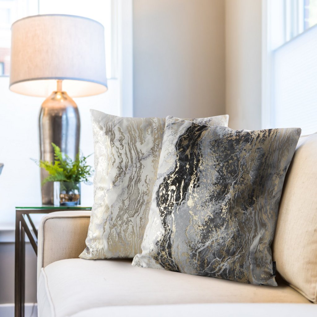 Povlak na polštář SOFI zdobí abstraktní vzor, který jemně odráží světlo a dodává místnosti efektní a stylový charakter. Povlak na polštář je vyroben ze sametu příjemného na dotek, který se vyznačuje jemným leskem. Šířka: 45 cm, délka: 45 cm, barva: šedá a šampaňská, gramáž: 200 GSM, složení: 100% polyester.Doplňkové parametry
