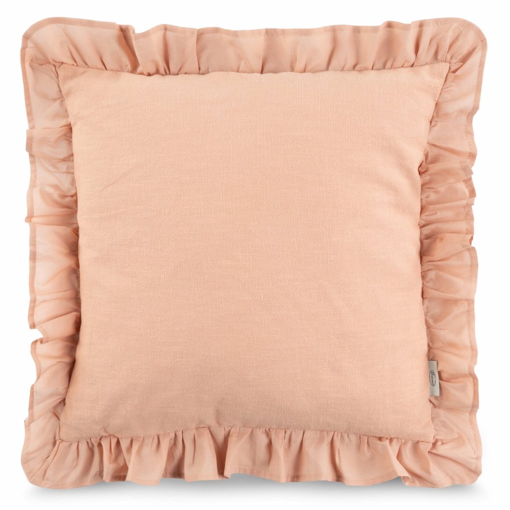 Dekorační povlak na polštář Terra Collection zdobený volánem. Šířka: 45 cm, délka: 45 cm, barva: světle růžová, gramáž: 150 GSM, složení: 100% bavlna.Doplňkové parametry