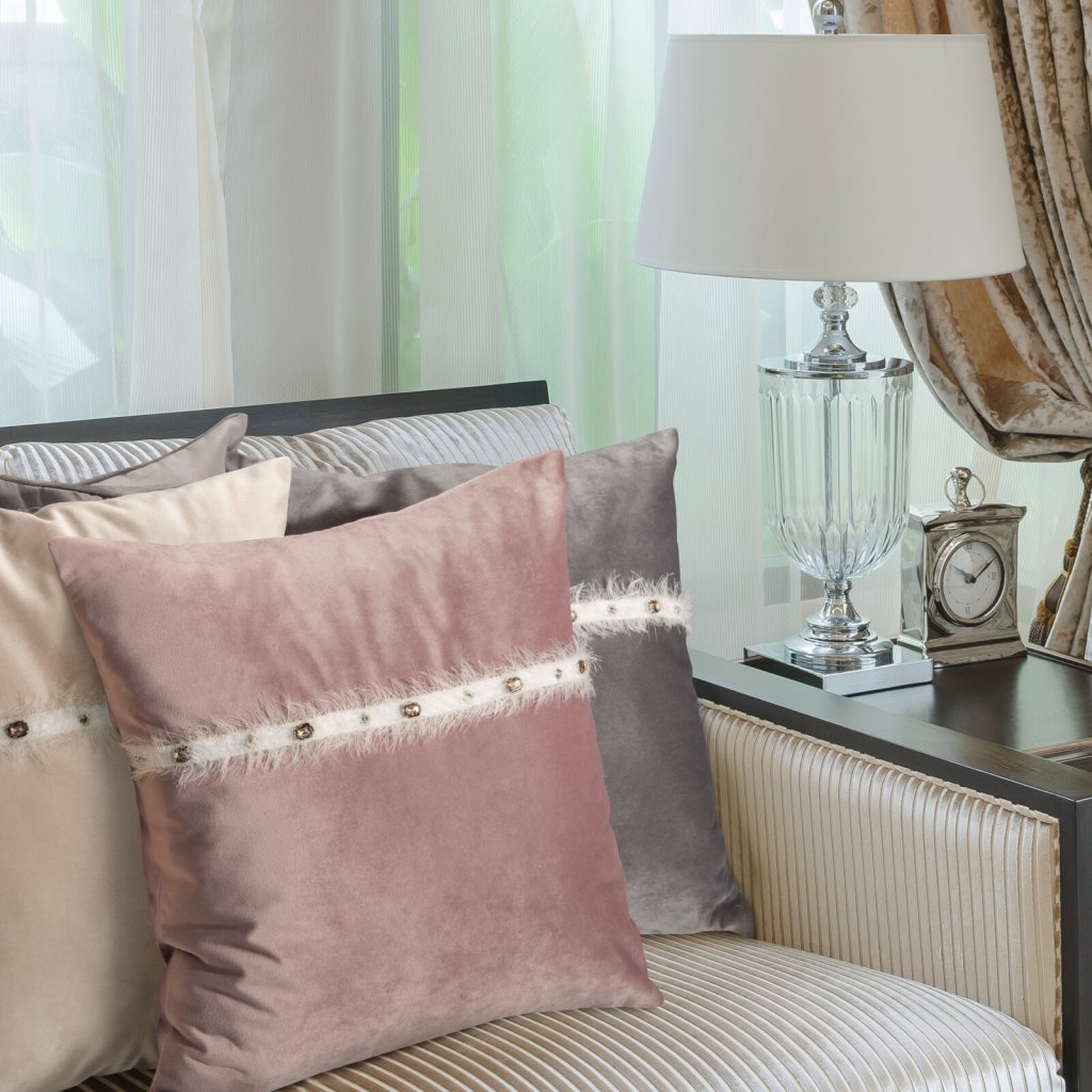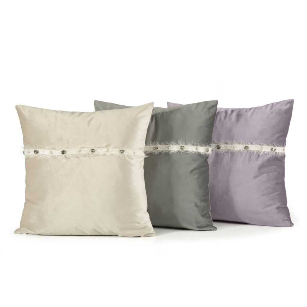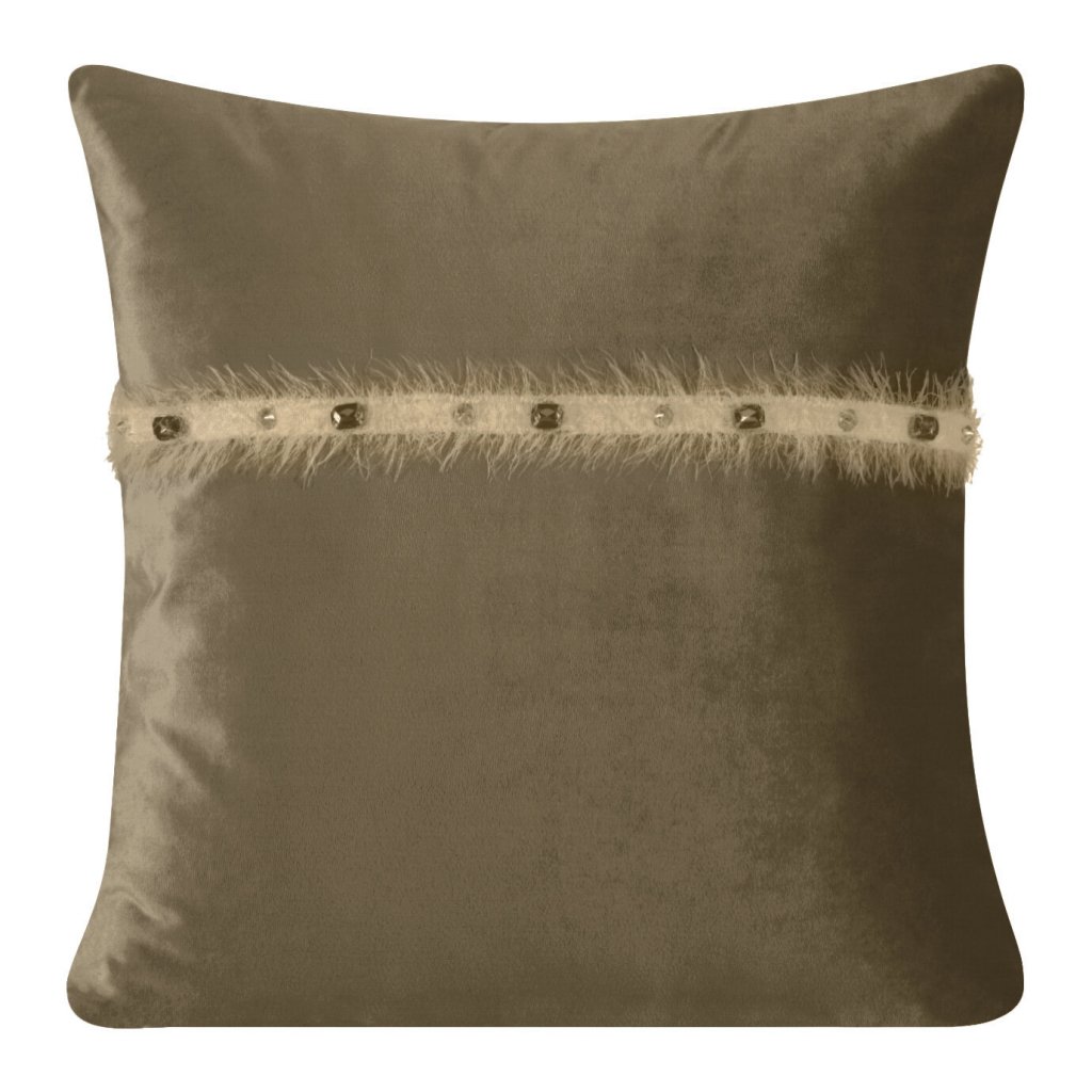 Sametový dekorační povlak na polštář zdobený jemným lemem a krystaly se zapínáním na zip. Šířka: 45 cm, délka: 45 cm, barva: světle hnědá, hmotnost: 300 GSM, složení: 100 % polyester.Doplňkové parametry