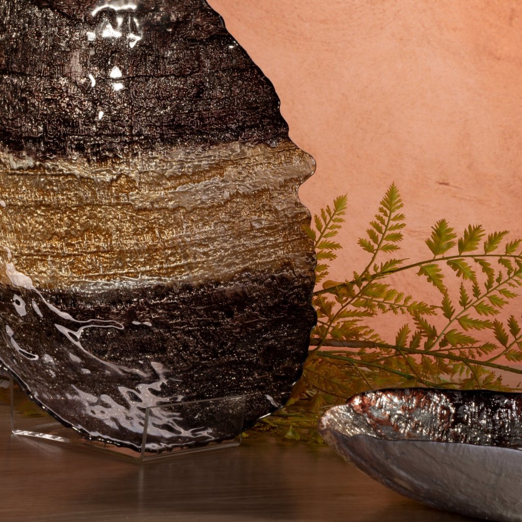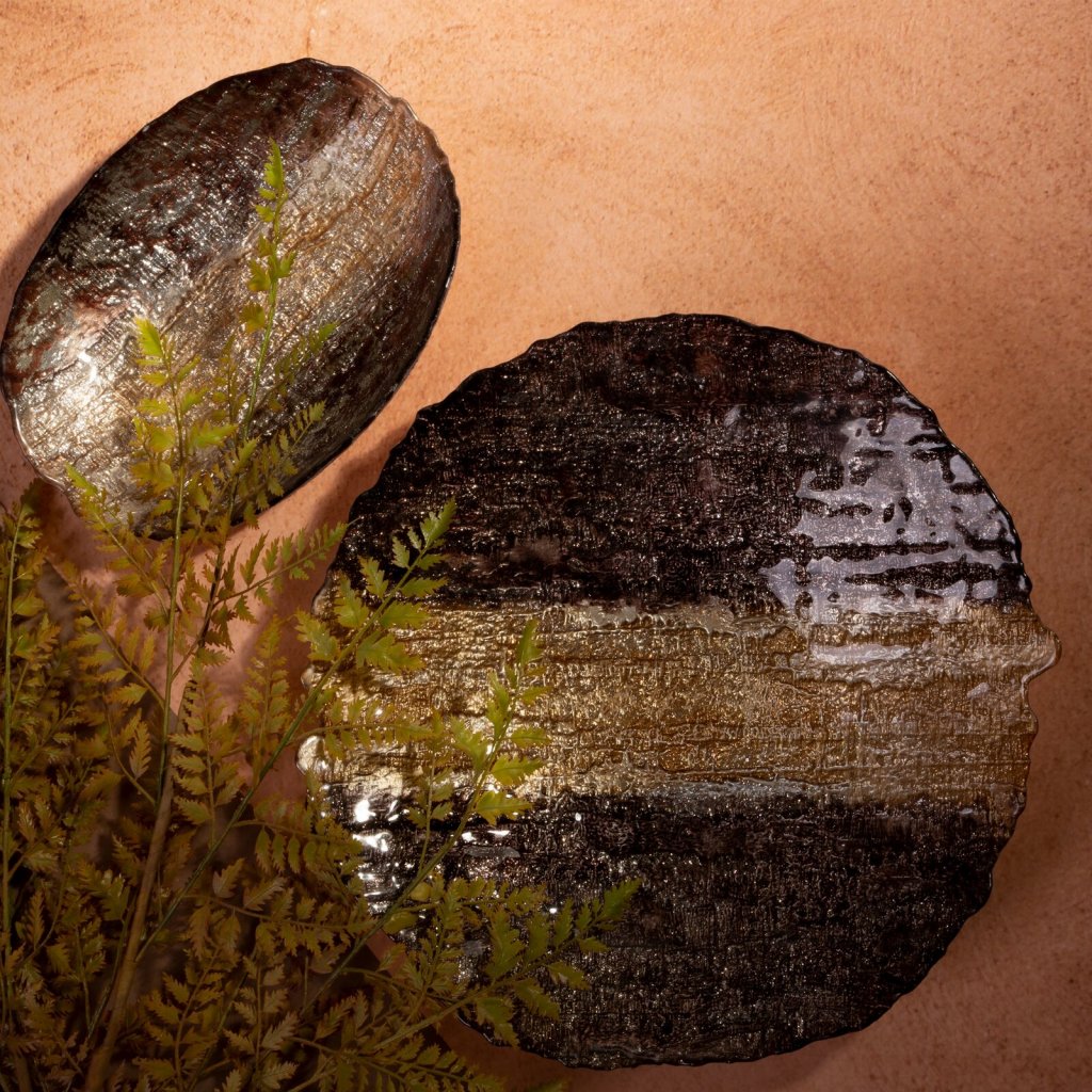 Dekorativní miska šířka: (fi) 39 cm, délka: 8 cm, barva: hnědá/zlatá, složení: 100 % skloDoplňkové parametry