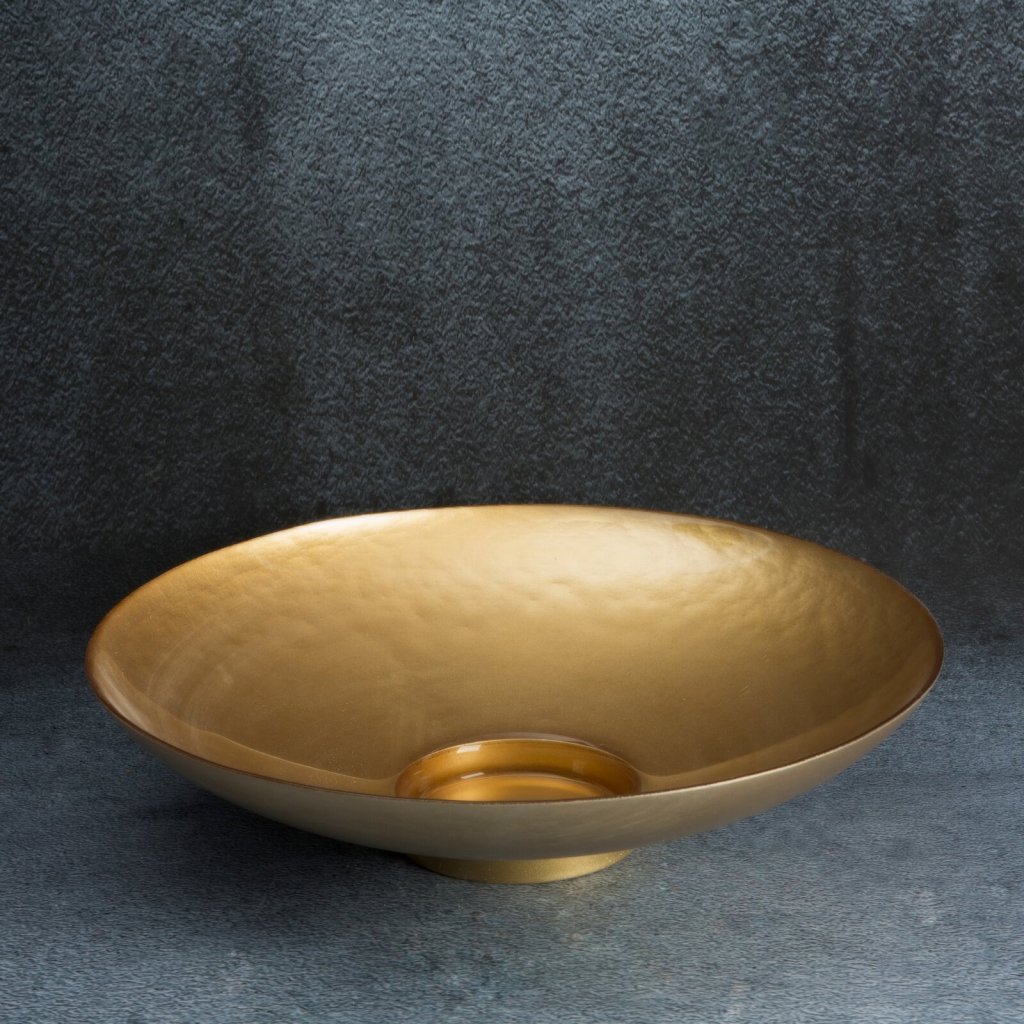 Dekorativní miska šířka: (fi) 35 cm, délka: 9 cm, barva: zlatá, složení: 100 % skloDoplňkové parametry