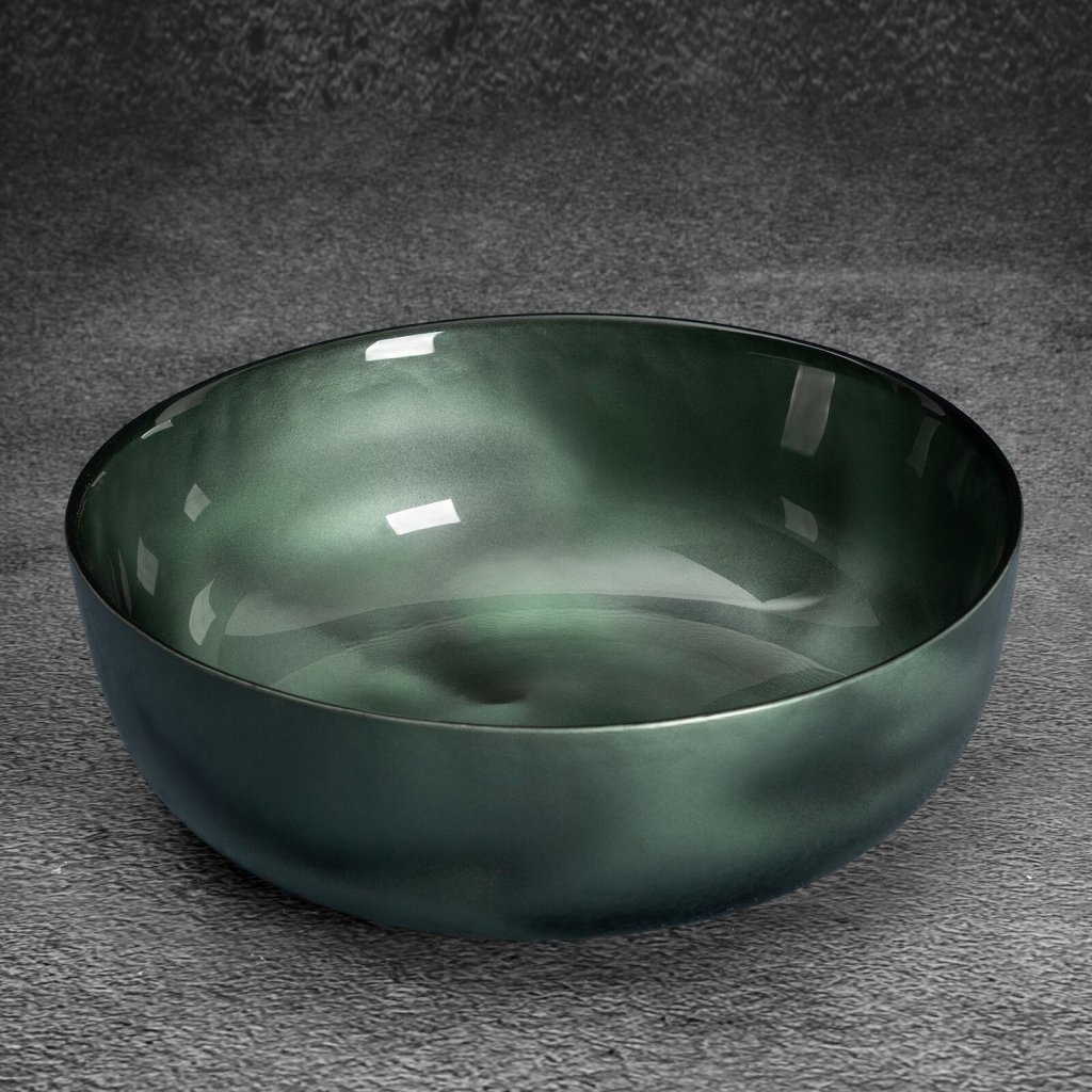 Dekorativní miska šířka: (fi) 21 cm, délka: 7 cm, barva: zelená, složení: 100 % skloDoplňkové parametry