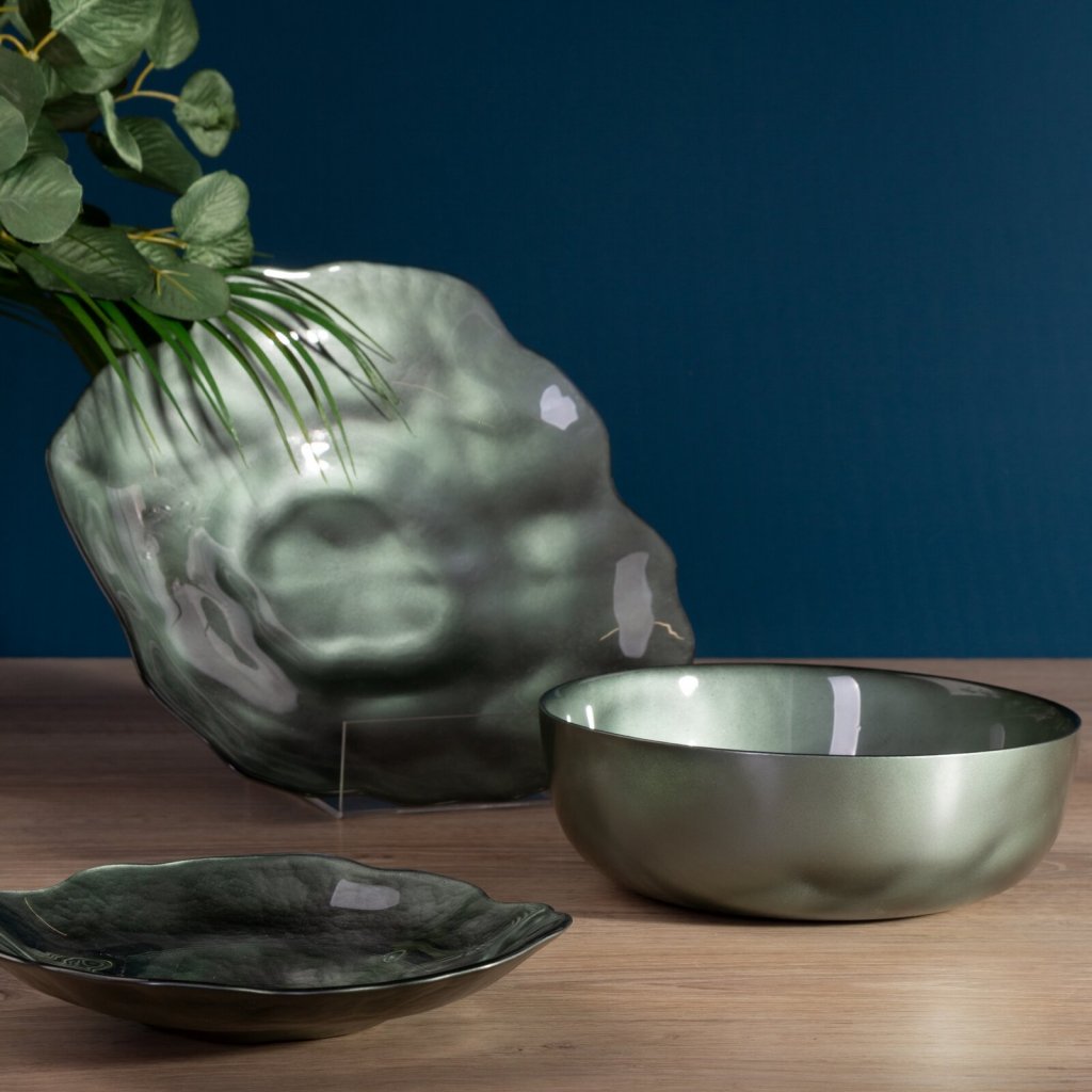 DEKORAČNÍ SKLENĚNÁ MISKA NIKEL (FI) 21X7 CM ZELENÁ