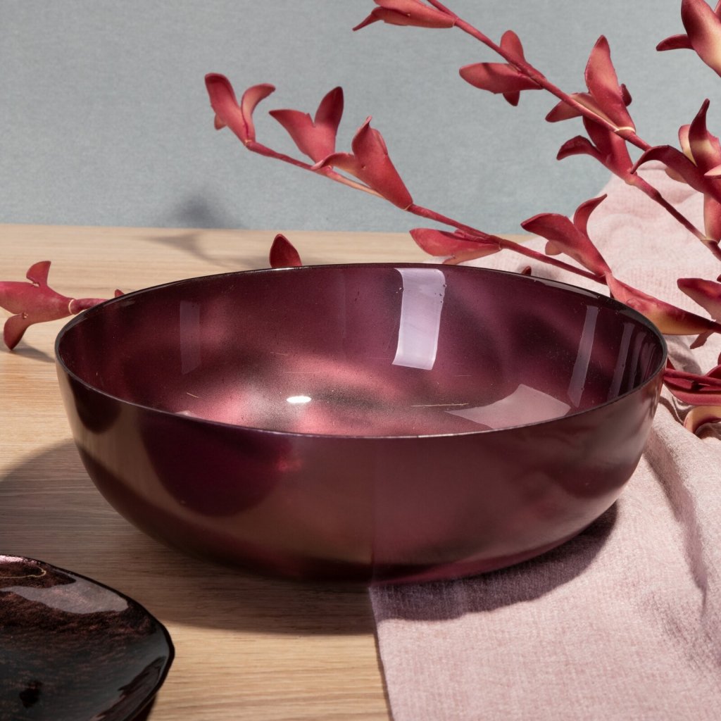 Dekorativní miska šířka: (fi) 27 cm, délka: 9 cm, barva: vínová, složení: 100 % skloDoplňkové parametry