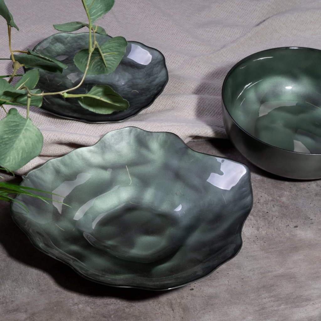 Dekorativní mísa šířka: 30 cm, délka: 28 cm, barva: zelená, složení: 100 % skloDoplňkové parametry
