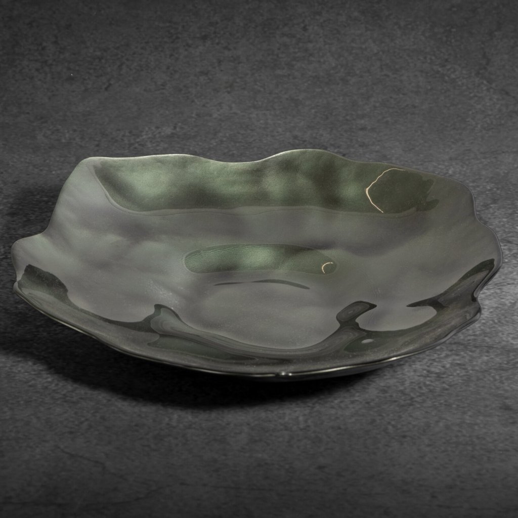 DEKORAČNÍ SKLENĚNÁ MISKA NIKEL 30X28X5 CM ZELENÁ