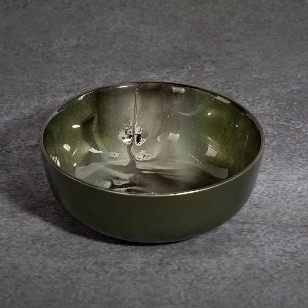 Dekorativní miska šířka: (fi) 16 cm, délka: 6 cm, barva: zelená/ocel, složení: 100 % skloDoplňkové parametry