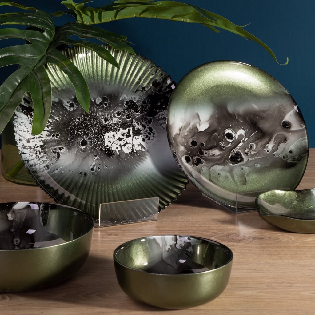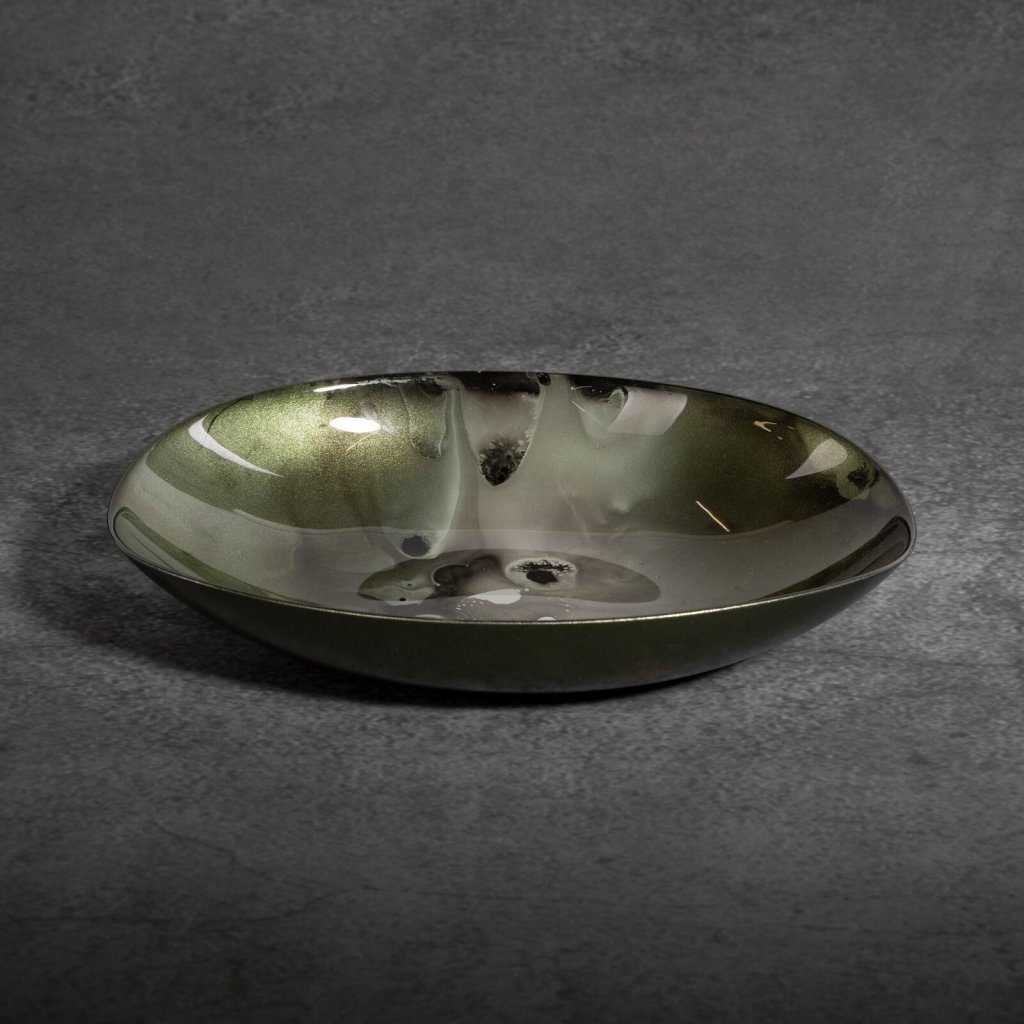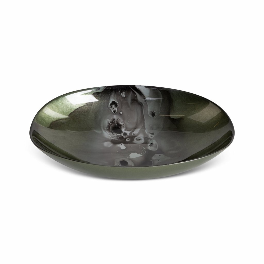 Dekorativní miska šířka: 31 cm, délka: 21 cm, barva: zelená/ocel, složení: 100% skloDoplňkové parametry