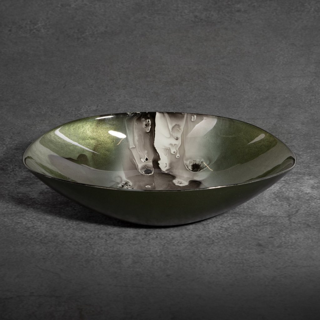 Dekorativní miska šířka: 27 cm, délka: 19 cm, barva: zelená/ocel, složení: 100% skloDoplňkové parametry