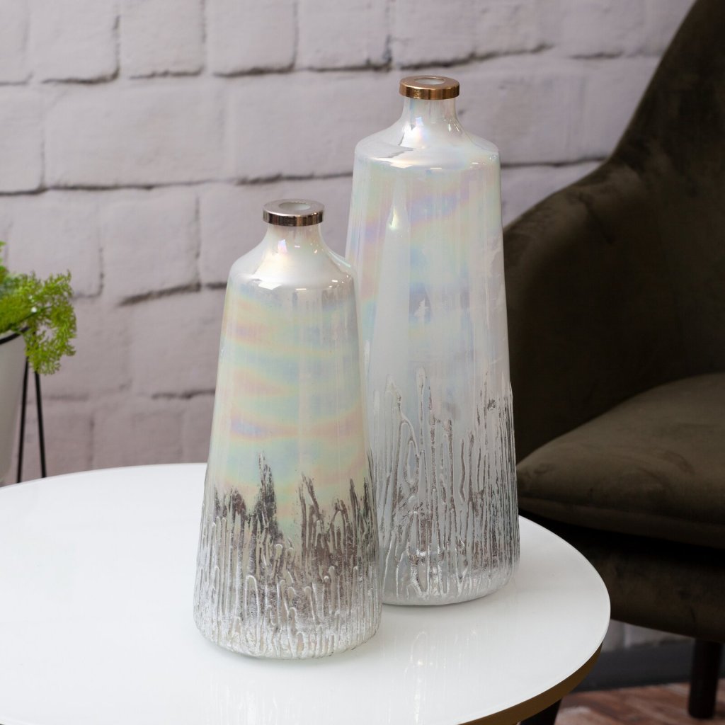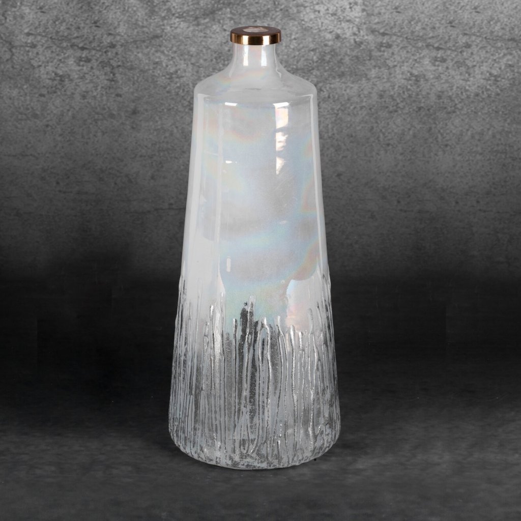 Dekorativní váza, šířka: (fi) 19 cm, délka: 43 cm, barva: vícebarevná, složení: sklo+kov.Doplňkové parametry