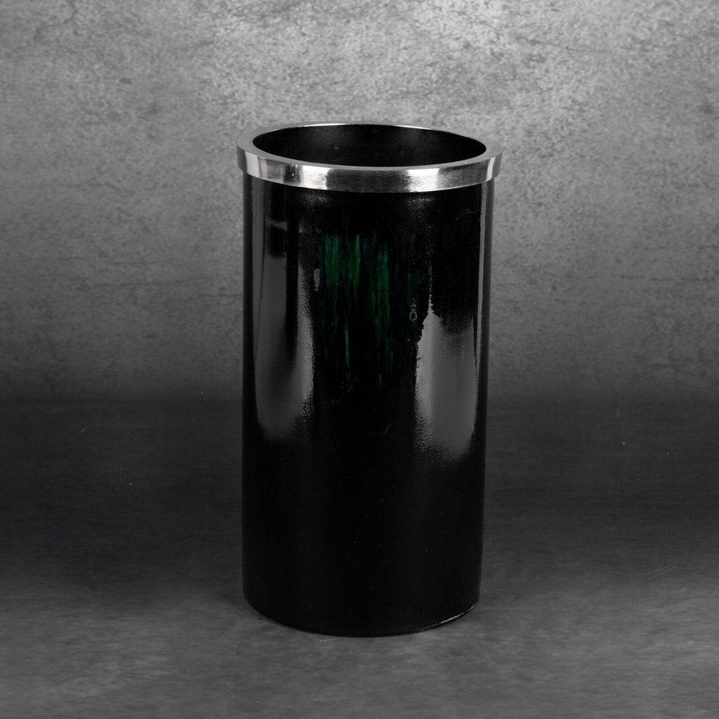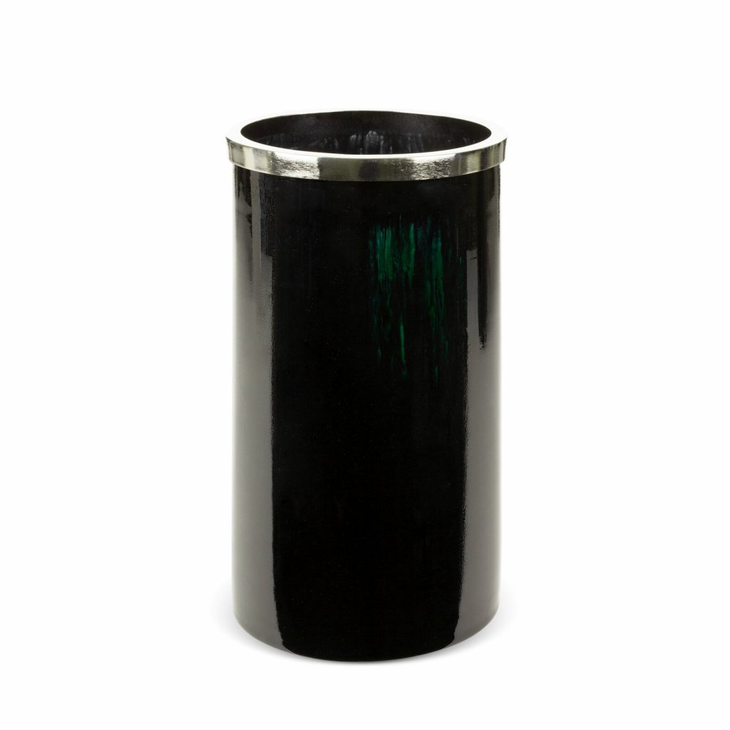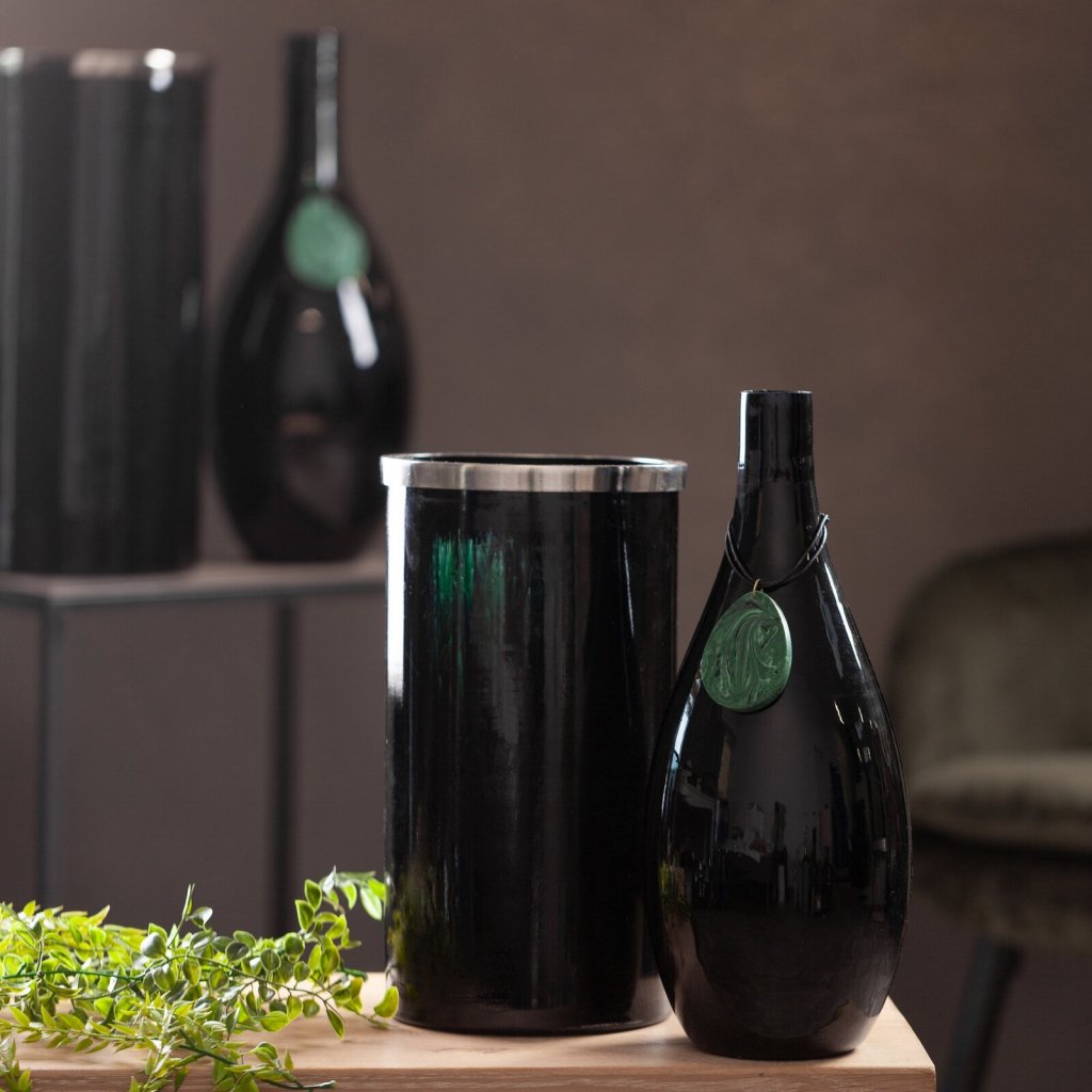 Dekorativní váza, šířka: (fi) 19 cm, délka: 33 cm, barva: černá, složení: 90 % sklo, 10 % kov.Doplňkové parametry