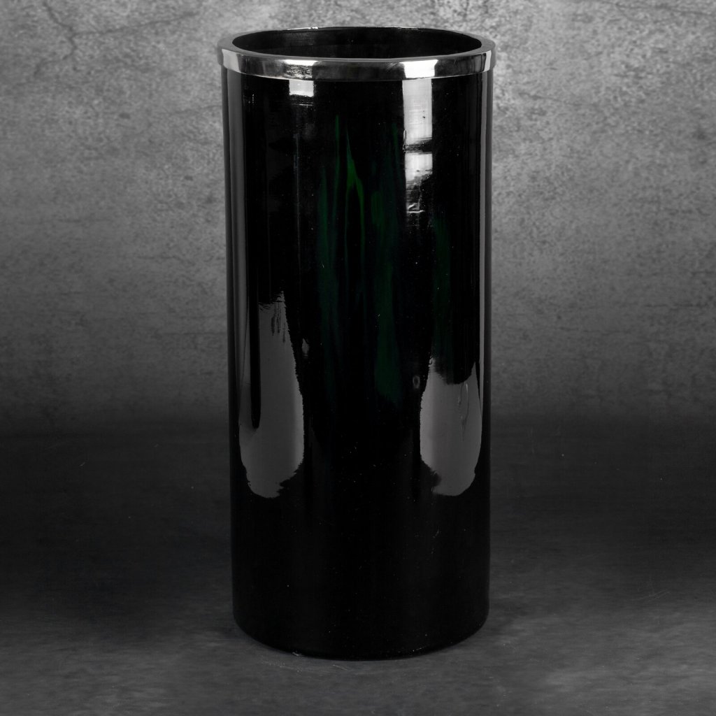 Dekorativní váza, šířka: (fi) 21 cm, délka: 45 cm, barva: černá, složení: 90 % sklo, 10 % kov.Doplňkové parametry