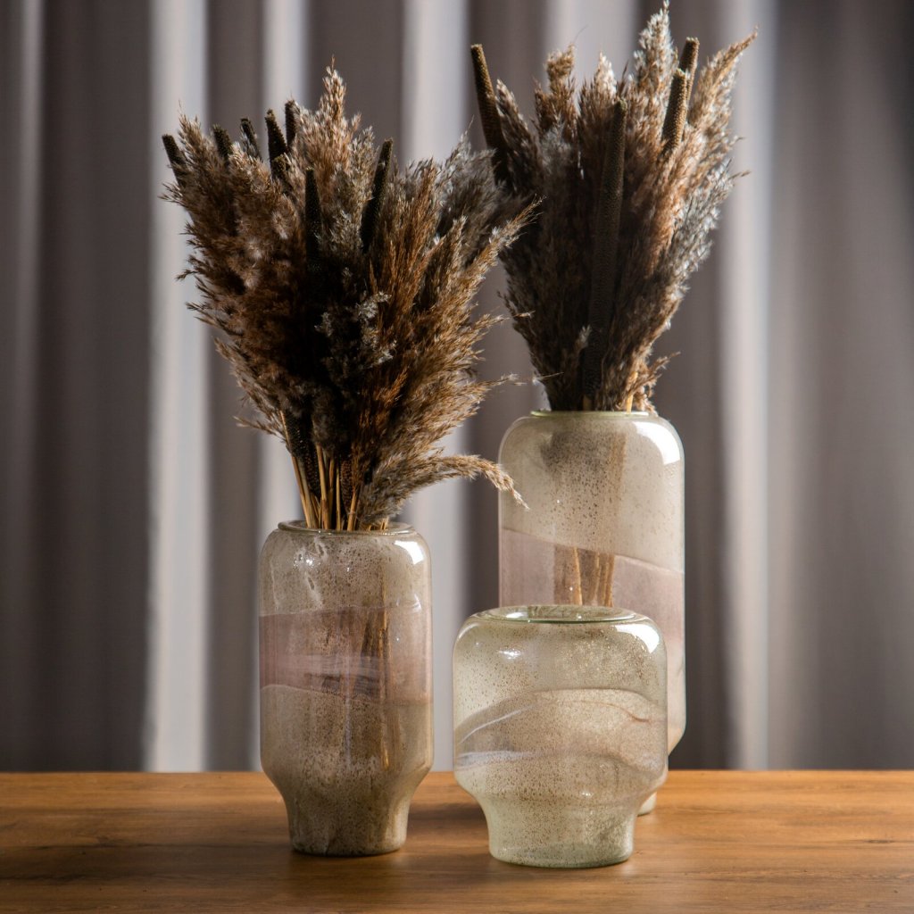DEKORAČNÍ SKLENĚNÁ VÁZA LANA (FI) 19X22 CM KRÉMOVÁ