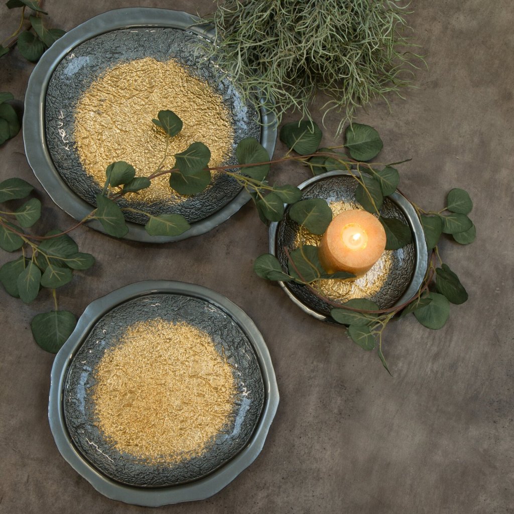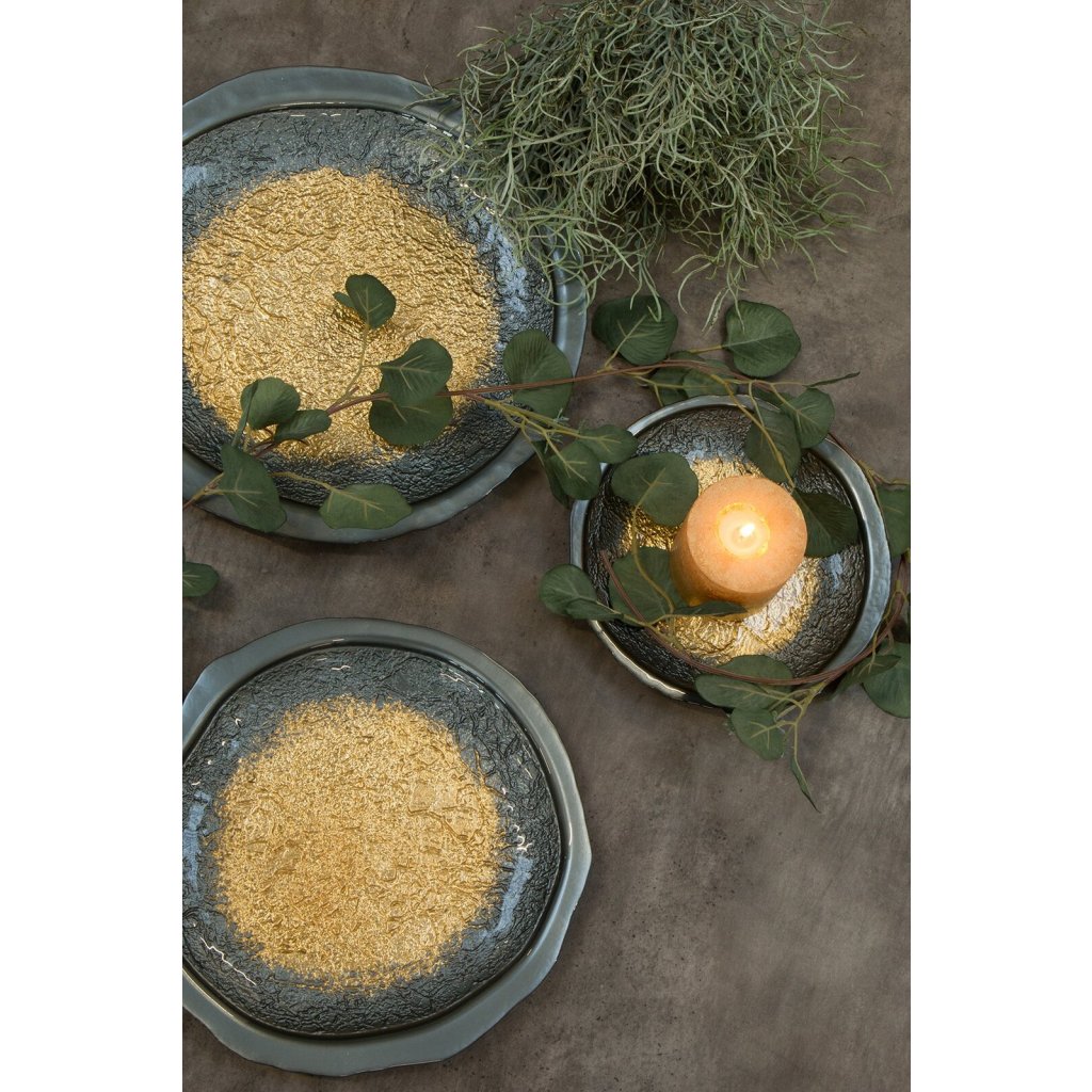 Dekorativní skleněná deska šířka: (fi) 28 cm, délka: 2 cm, barva: ocel/zlato, složení: 100 % skloDoplňkové parametry