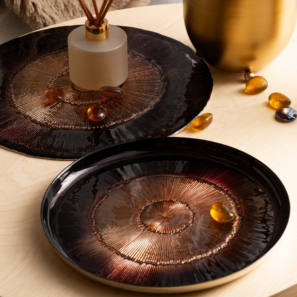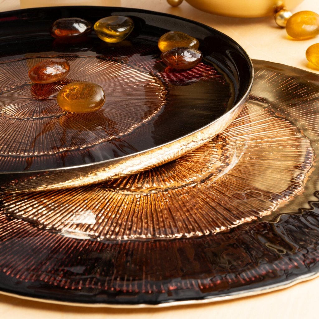 DEKORAČNÍ SKLENĚNÝ TALÍŘ BONITA (02) (FI) 33X3 CM HNĚDÝ
