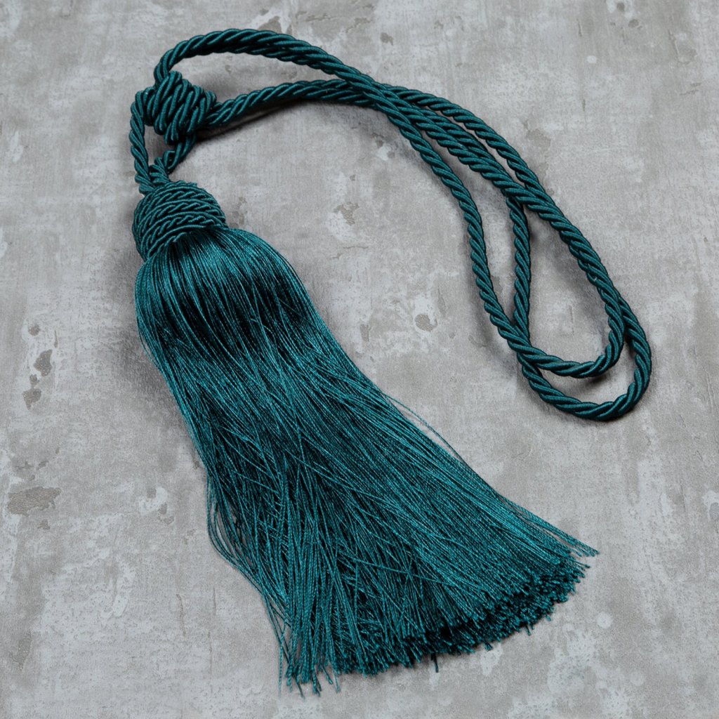 Dekorační šňůra na záclony, Barva: tmavě tyrkysová, Složení: 100% polyesterDoplňkové parametry