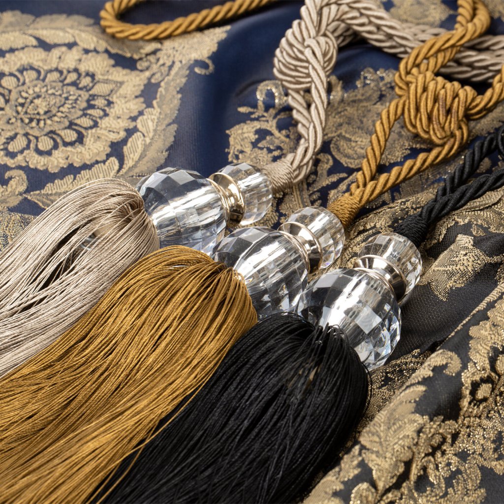 Dekorační šňůrka na záclony, délka: 74 cm, barva: tmavě modrá, složení: 100% polyesterDoplňkové parametry