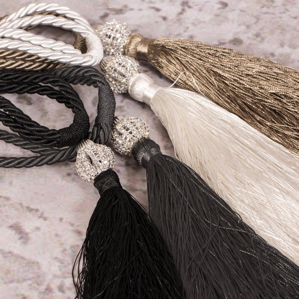 Dekorační šňůrka na záclony, barva: ocelová, Složení: 100% polyester.