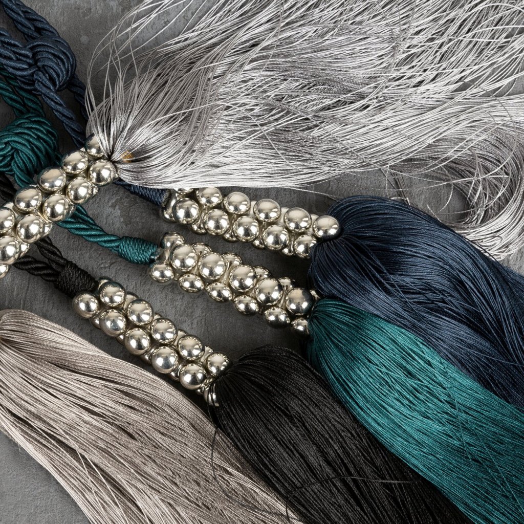 Dekorační šňůrka na záclony, délka: 70 cm, barva: tmavě modrá , složení: 100% polyester.