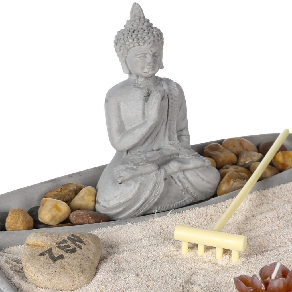 Dekorační soška Buddy o rozměrech 23×23×13 cm představuje stylový zenový zahradní set , který je navržen tak, aby přinesl klid a harmonii do vašeho domova .