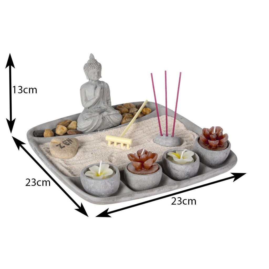 Součástí balení jsou čtyři čajové svíčky a tyčinkové kadidlo , které dotváří celkový zážitek a navozují relaxační atmosféru . Tento dekorativní set se skvěle hodí do obývacího pokoje, ložnice nebo domácího meditačního koutku a stane se harmonickým prvkem každého interiéru.