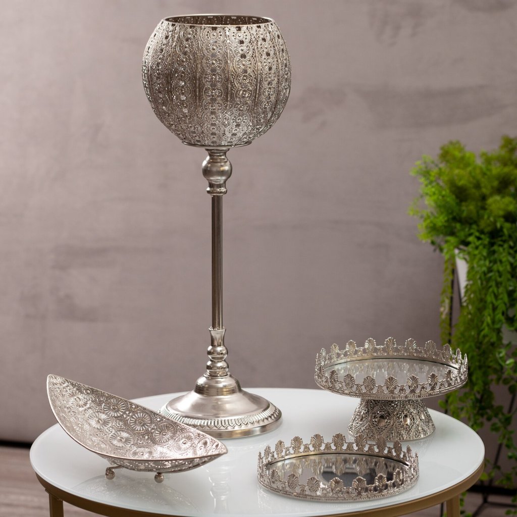 Dekorativní svícen šířka: (fi) 21 cm, délka: 60 cm, barva: stříbrná, složení: železoDoplňkové parametry
