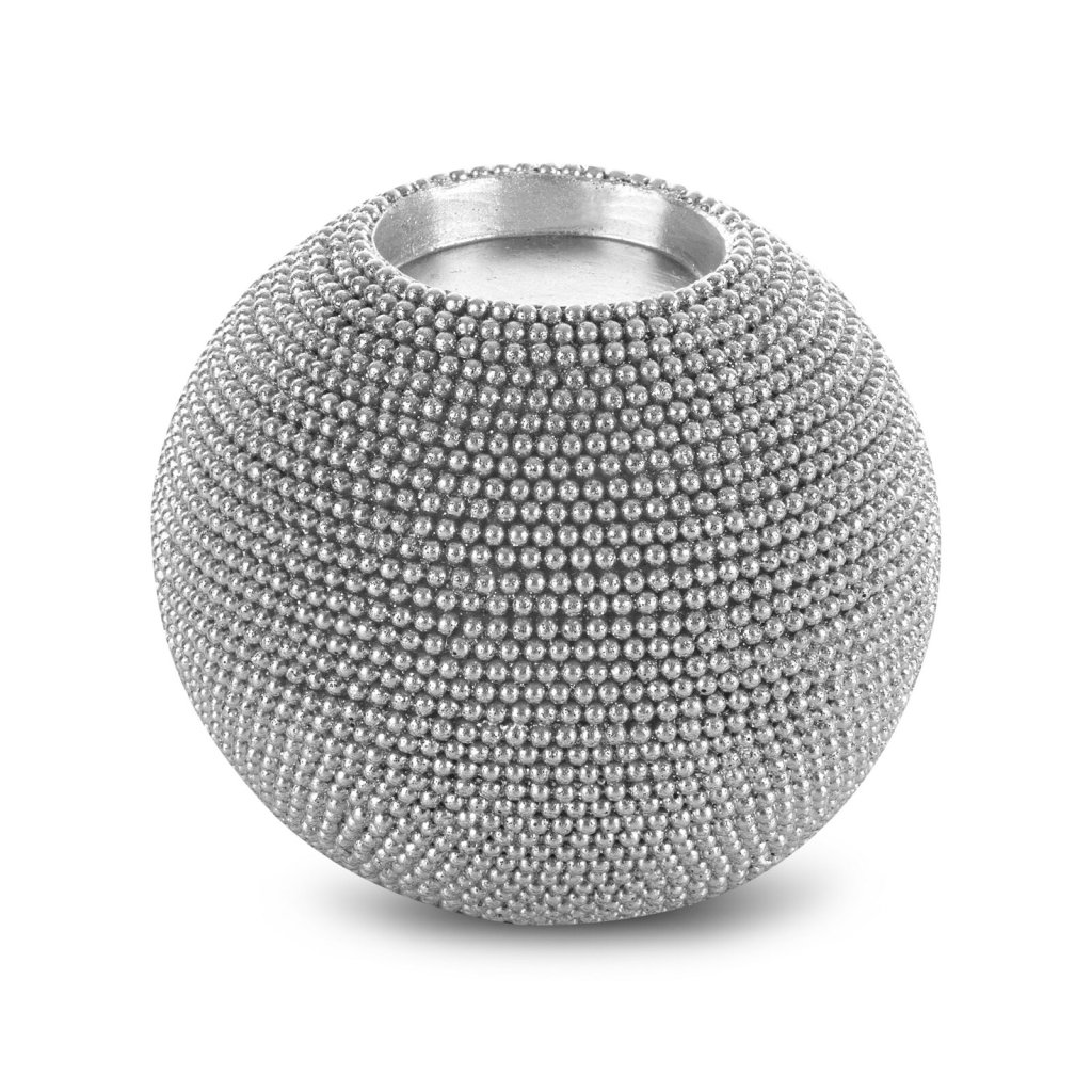 Dekorativní svícen, barva: stříbrná, velikost: 10x10x9 cm, složení: polyesterová pryskyřice.Doplňkové parametry