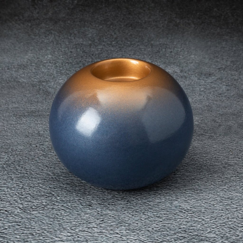 Dekorativní svícen šířka: (fi) 12 cm, délka: 11 cm, barva: modrá/zlatá, složení: keramická hlínaDoplňkové parametry