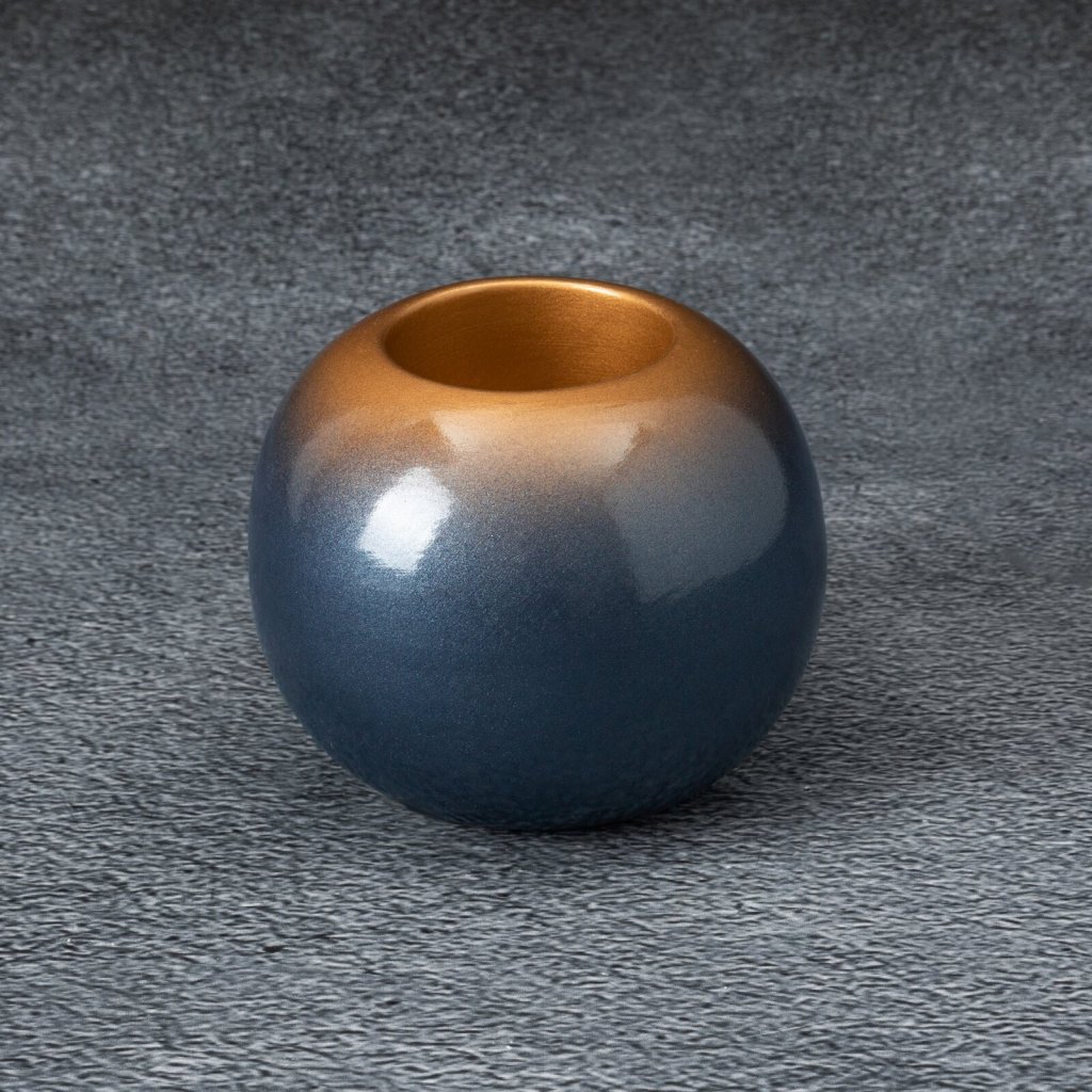 Dekorativní svícen šířka: (fi) 10 cm, délka: 9 cm, barva: modrá/zlatá, složení: keramická hlínaDoplňkové parametry