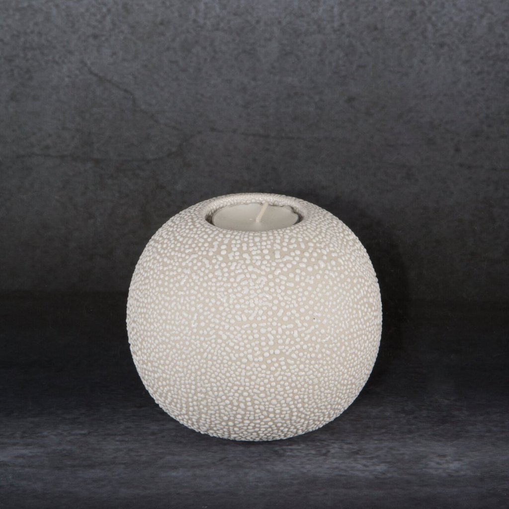 Dekorativní svícen, šířka: (fi)9 cm, délka: 8 cm, barva: krémová, složení: keramická hlína.Doplňkové parametry