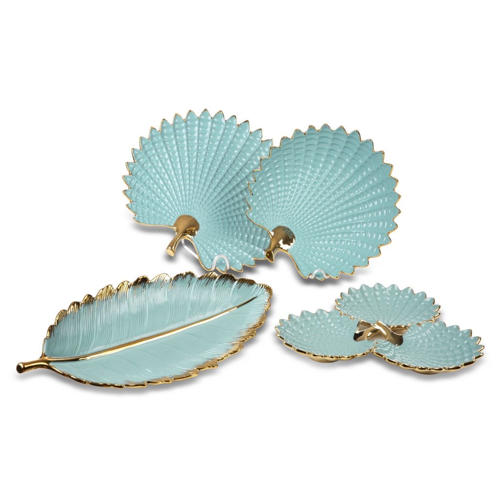Dekorativní talíř šířka: 40 cm, délka: 38 cm, barva: světle modrá/zlatá, složení: keramická hlínaDoplňkové parametry