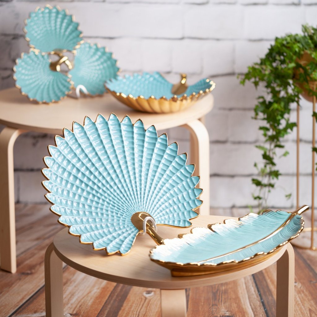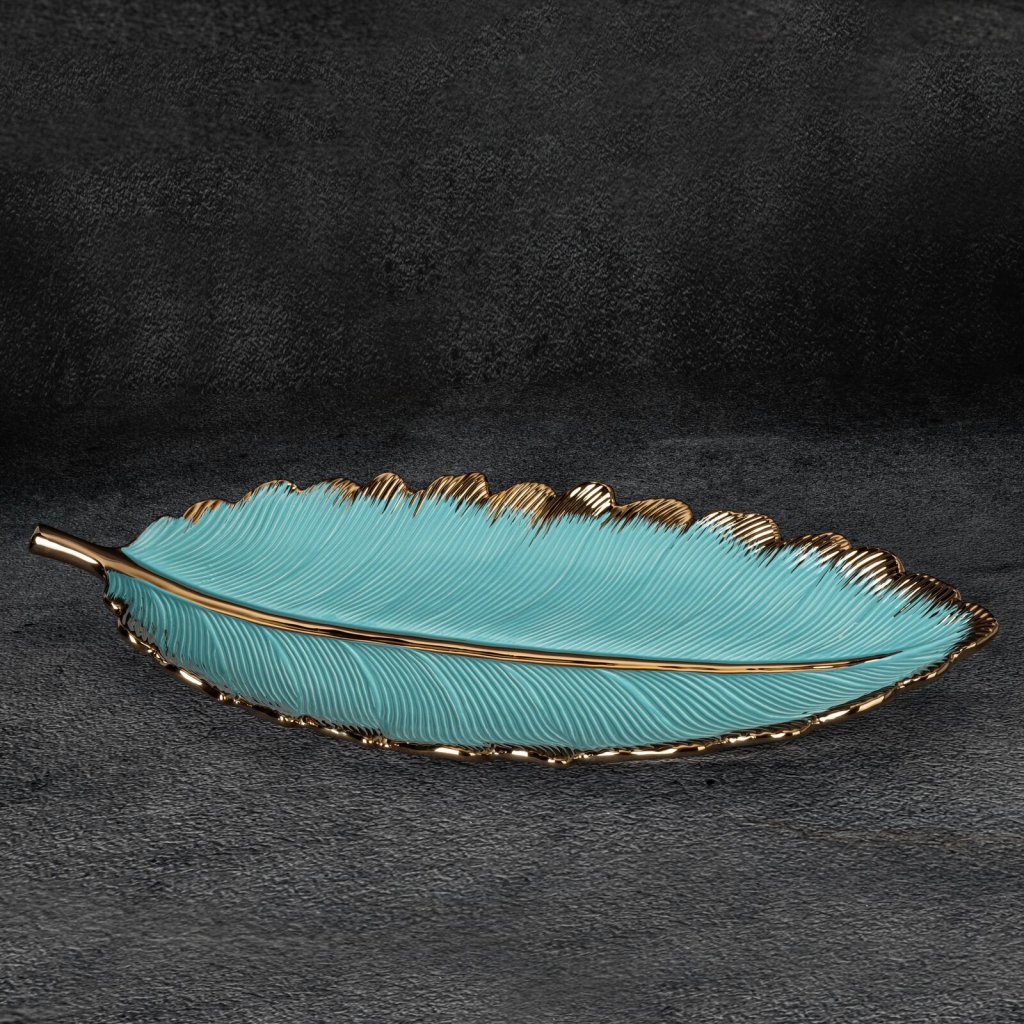 Dekorativní talíř šířka: 53 cm, délka: 23 cm, barva: světle modrá/zlatá, složení: keramická hlína.Doplňkové parametry