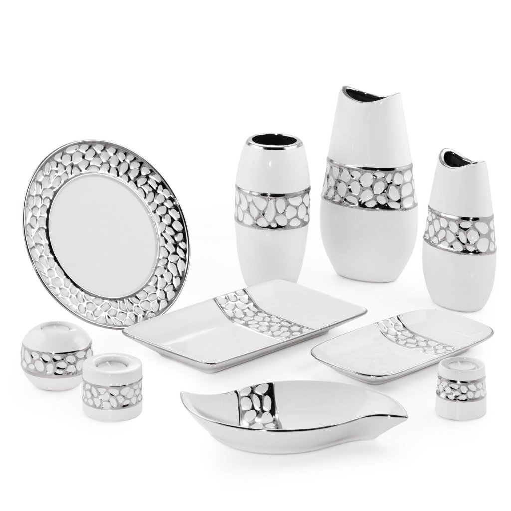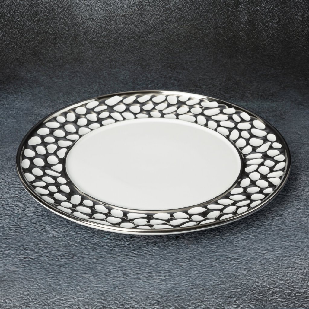 Dekorativní talíř šířka: (fi) 30 cm, délka: 30 cm, barva: bílá/stříbrná, složení: keramická hlínaDoplňkové parametry