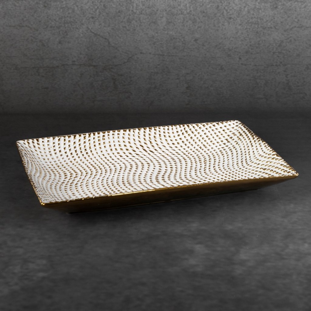 Dekorativní talíř šířka: 35 cm, délka: 20 cm, barva: bílá/zlatá, složení: keramická hlínaDoplňkové parametry