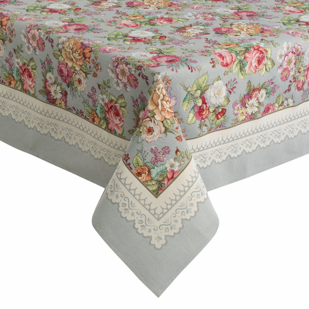 Dekorační gobelínový ubrus s potiskem květin, šířka: 140 cm, délka: 180 cm, barva: vícebarevná, složení: 63 % polyester, 34 % bavlna, 3 % akryl.Doplňkové parametry