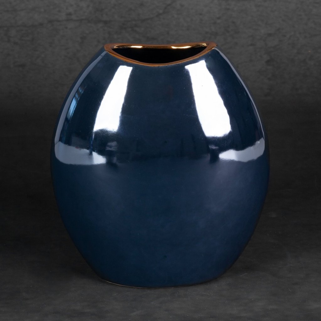 Krásná a jednoduchá dekorativní váza, šířka: 18 cm, délka: 20 cm, barva: modrá a zlatá, složení: keramická hlína.Doplňkové parametry