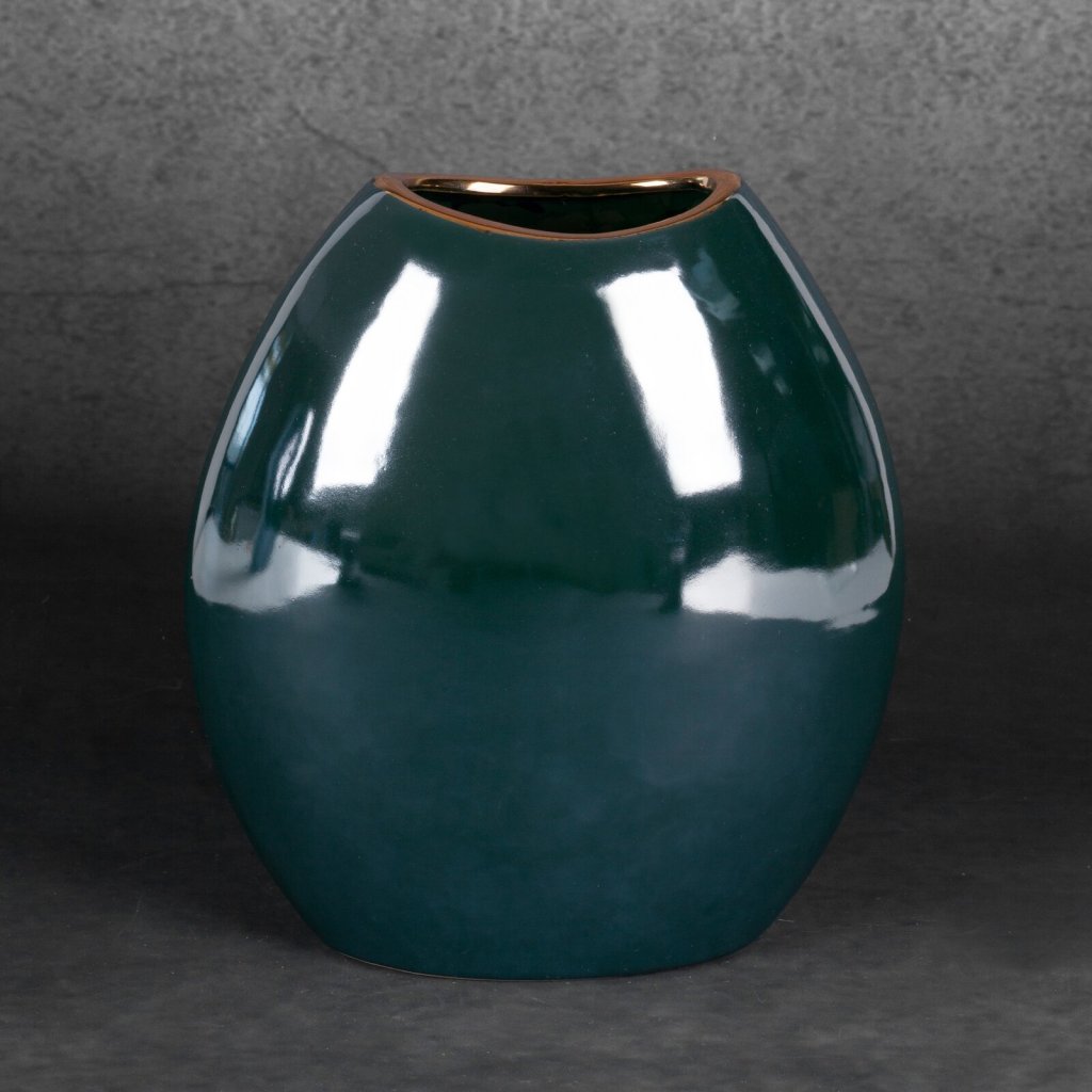 Krásná a jednoduchá dekorativní váza, šířka: 18 cm, délka: 20 cm, barva: zelená a zlatá, složení: keramická hlína.Doplňkové parametry