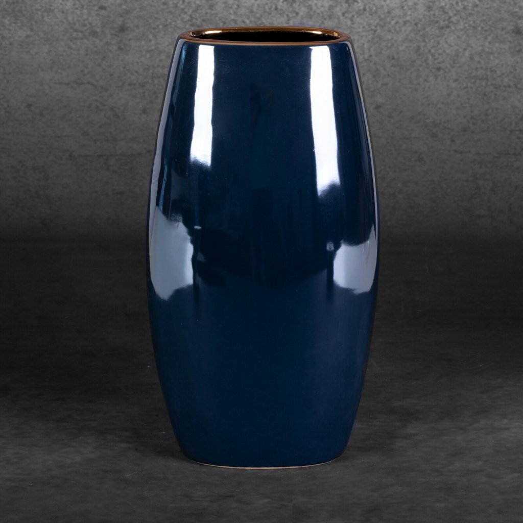 Krásná a jednoduchá dekorativní váza, šířka: 19 cm, délka: 35 cm, barva: modrá a zlatá, složení: keramická hlína.Doplňkové parametry