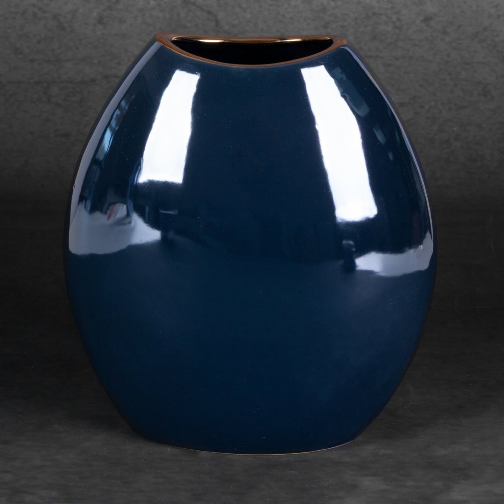 Krásná a jednoduchá dekorativní váza, šířka: 22 cm, délka: 25 cm, barva: modrá a zlatá, složení: keramická hlína.Doplňkové parametry