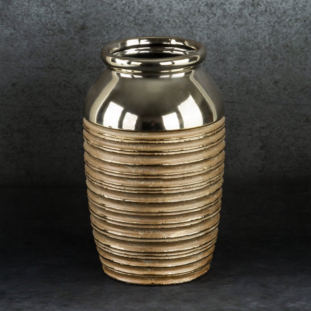 Dekorativní váza, šířka: (fi) 17 cm, délka: 28 cm, barva: zlatá, složení: keramická hlína.Doplňkové parametry