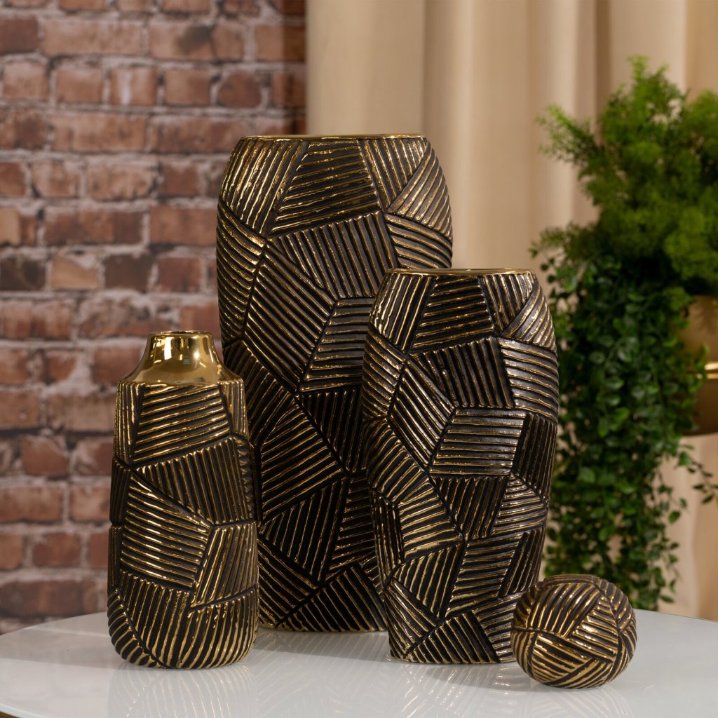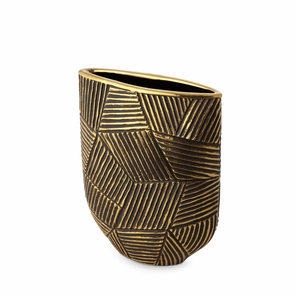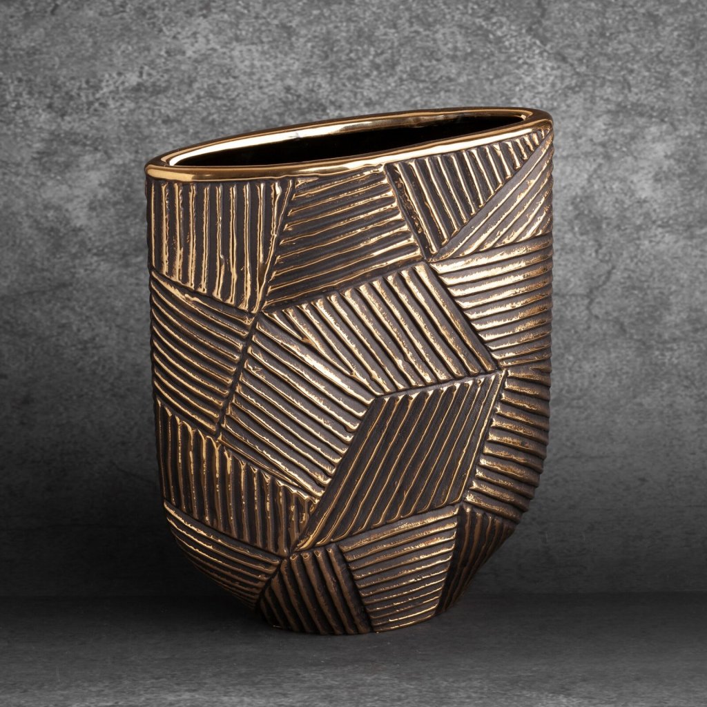 Dekorativní váza šířka: 21 cm, délka: 9 cm, barva: černá/zlatá, složení: keramická hlína.Doplňkové parametry