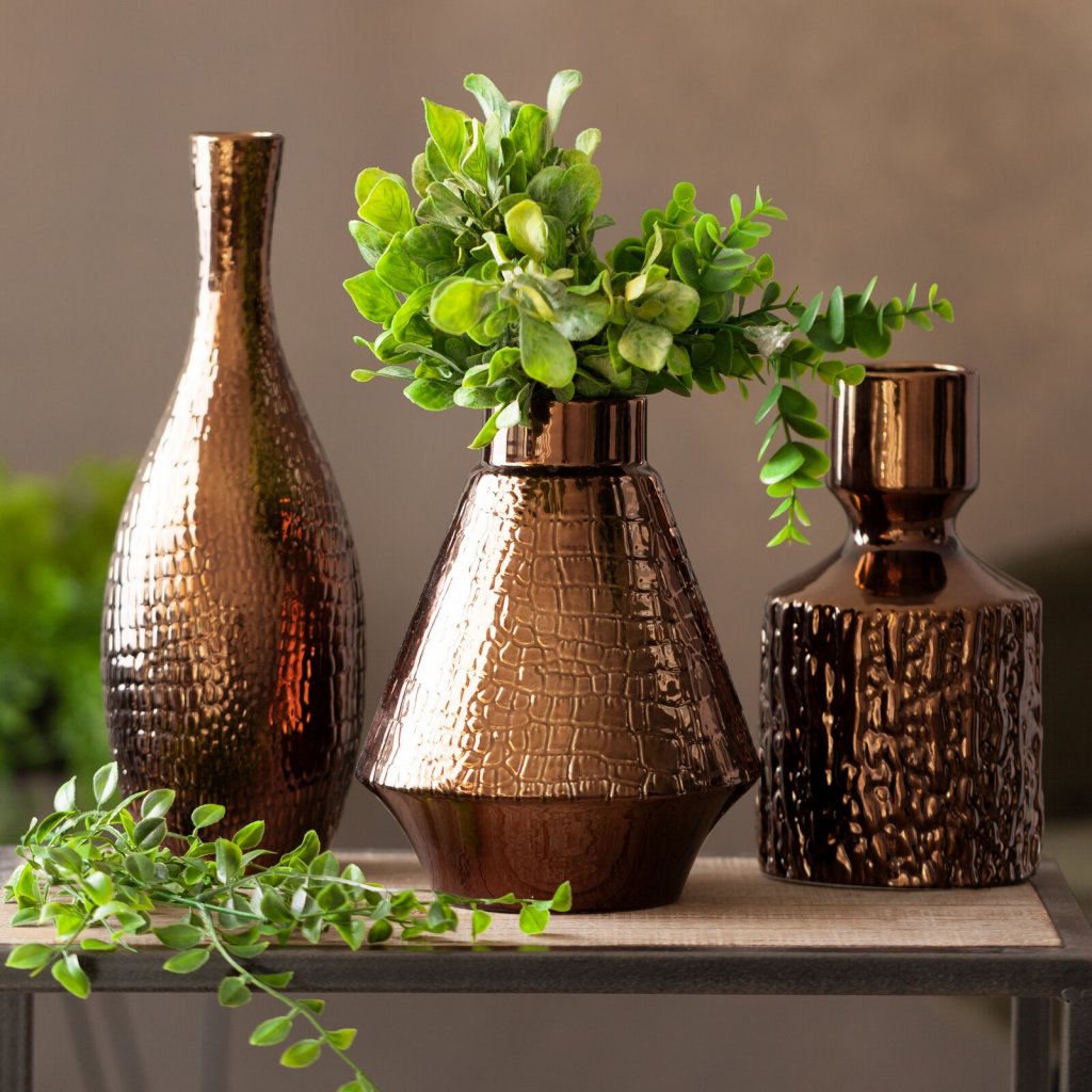 Dekorativní váza šířka: (fi) 12 cm, délka: 24 cm, barva: měděná, složení: 100% dolomit.Doplňkové parametry