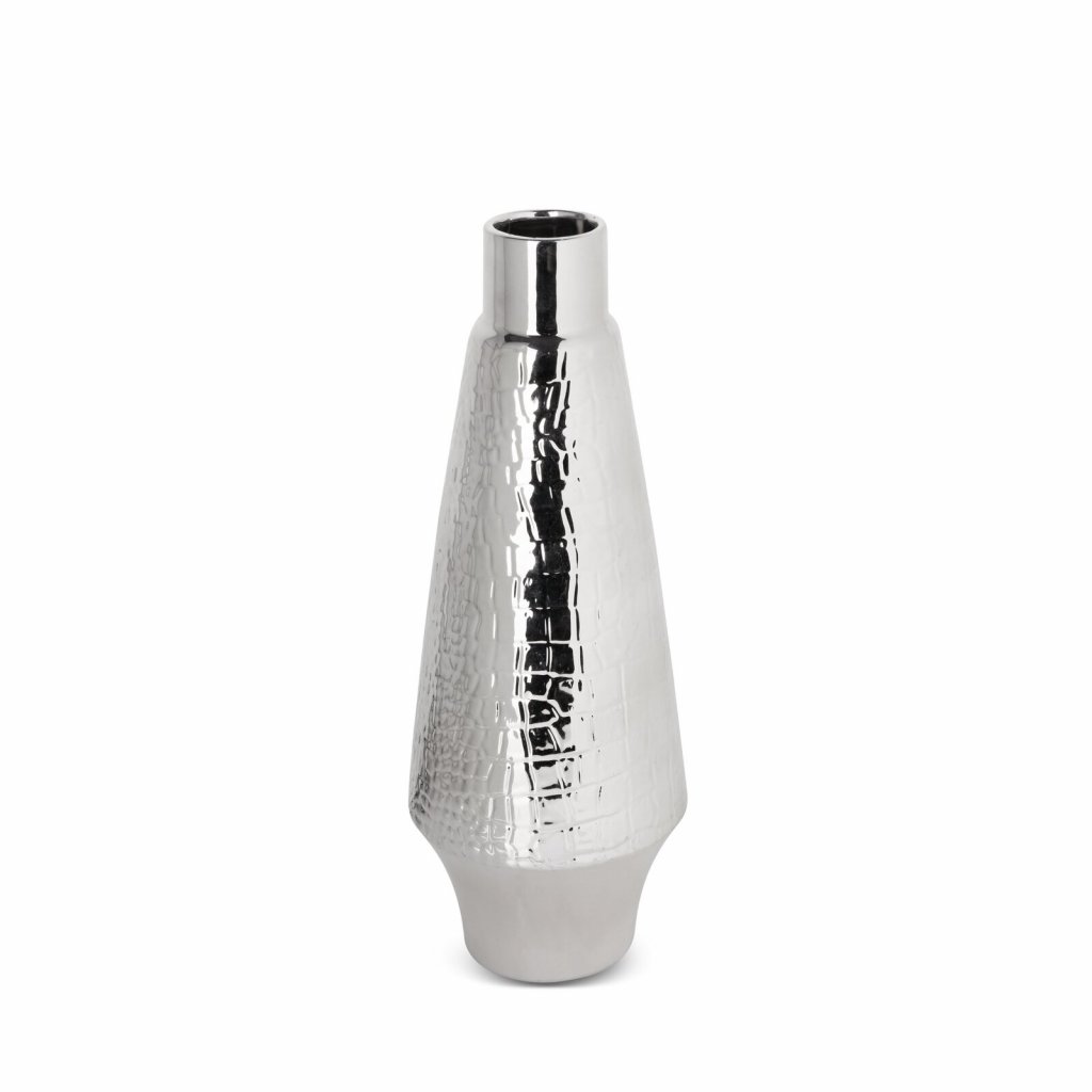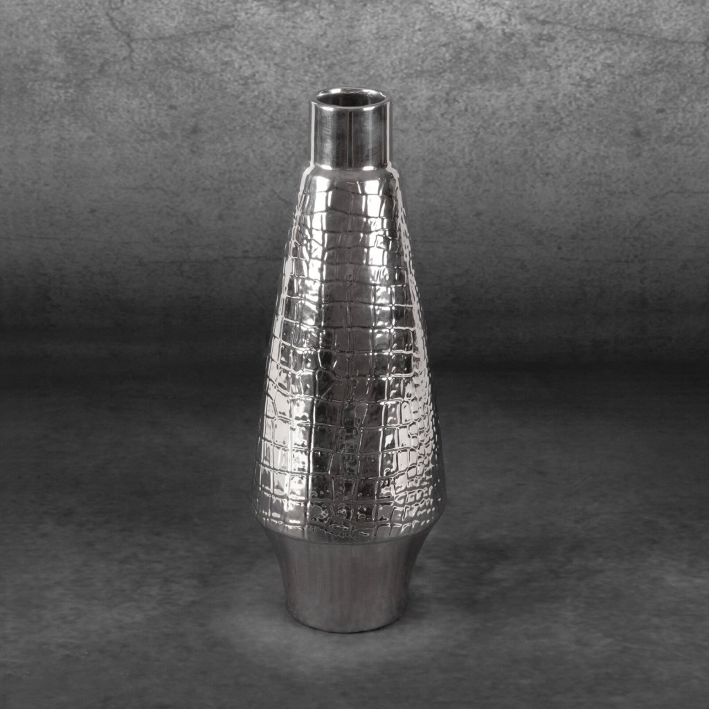 Dekorativní váza, šířka: (fi) 14 cm, délka: 39 cm, barva: stříbrná, složení: 100% dolomit.Doplňkové parametry